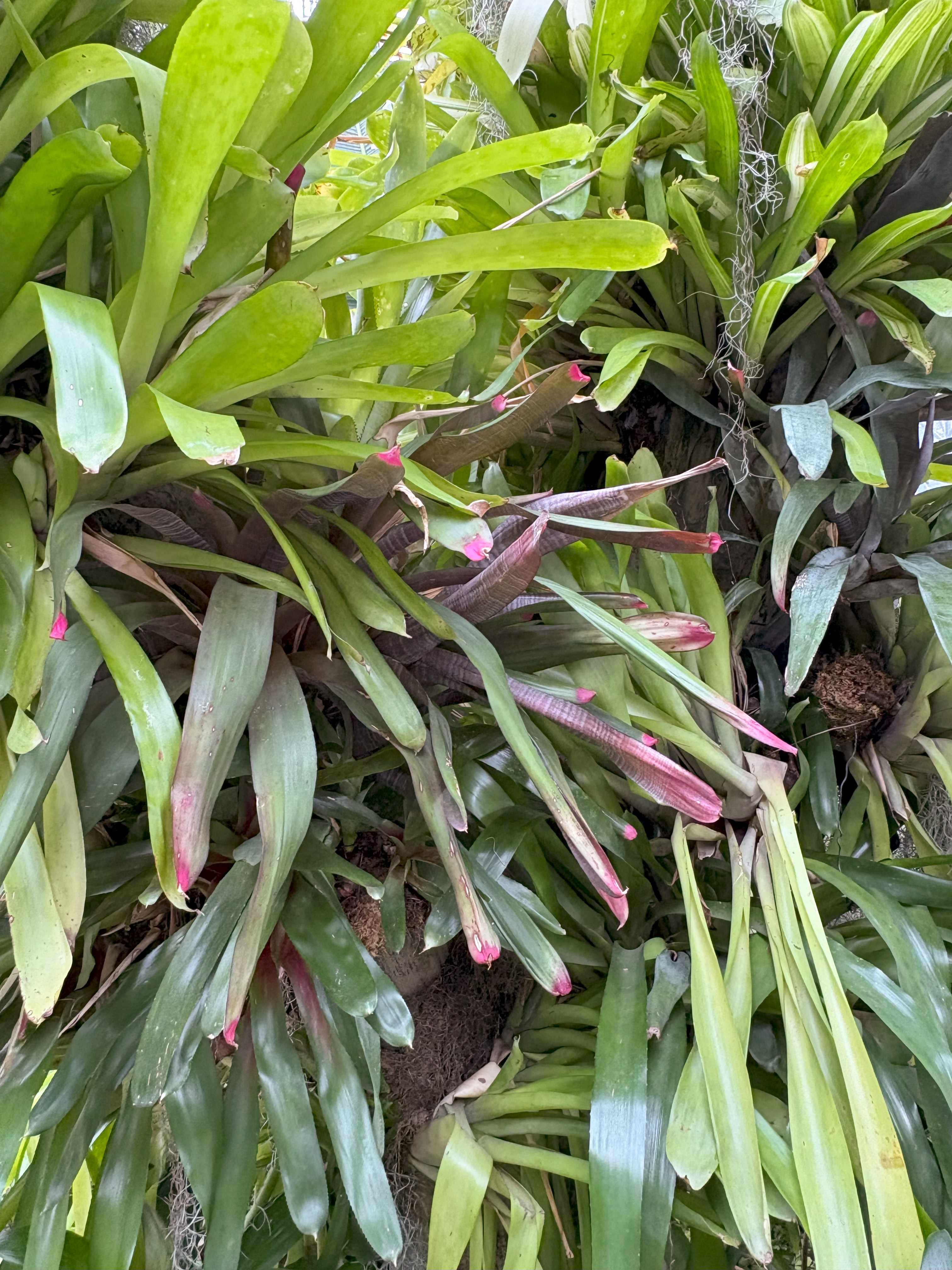 思うに、ブロメリアってもちろん単体でひとつひとつ愛でるのも楽しいし、それぞれ可愛いのですが、その種類や大きさ・色柄の特徴が際立つたくさんの株が群生する様が、世界に一つの世界観を目の前に作り出しているような圧倒的な魅力があると思いますね。