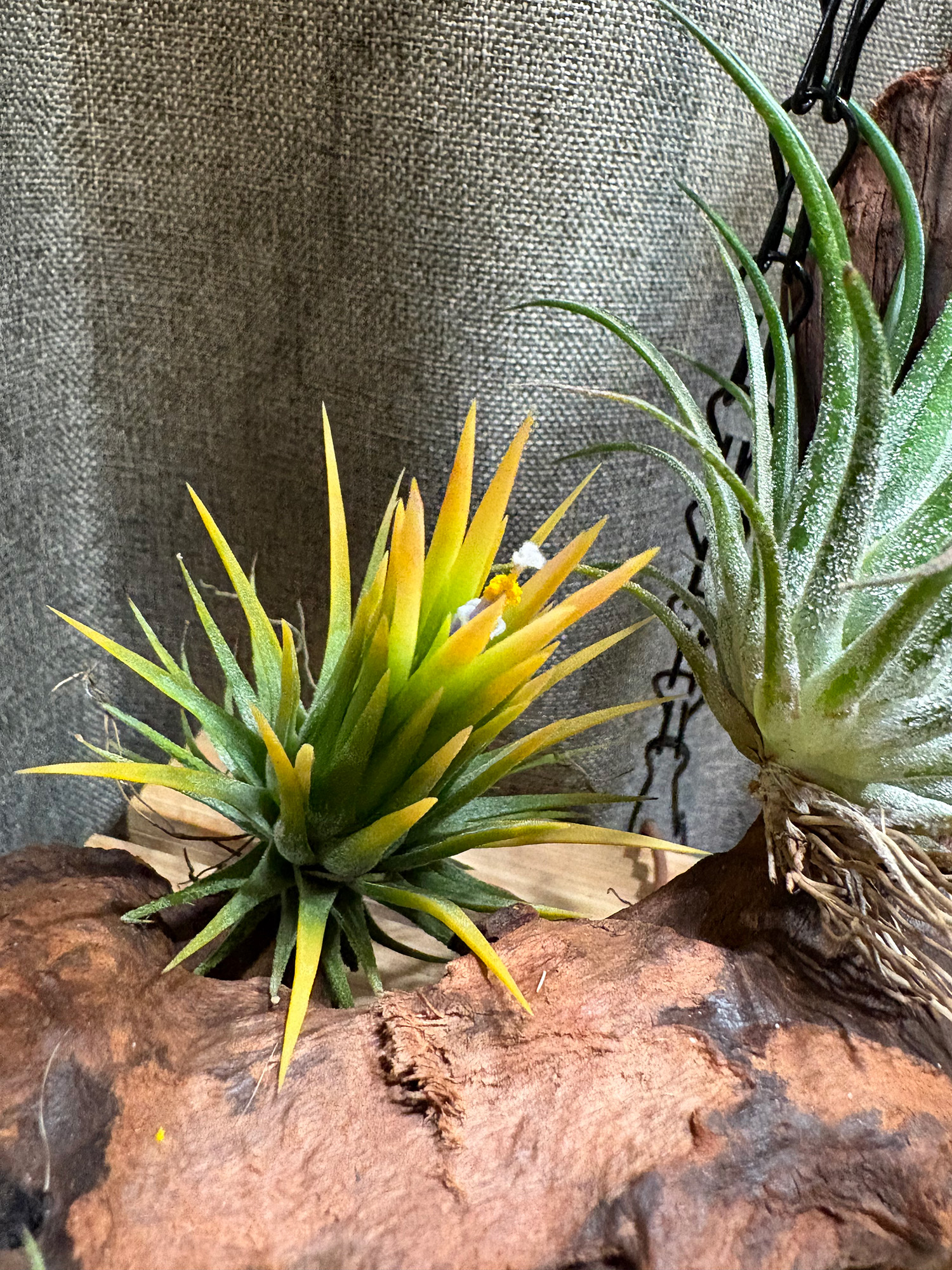 実は、チランジアは1度花を咲かせると、子株を出し枯れて行きます。母親になるのですね。この2株は花が咲いたので、色が戻るのは仕方がありません。