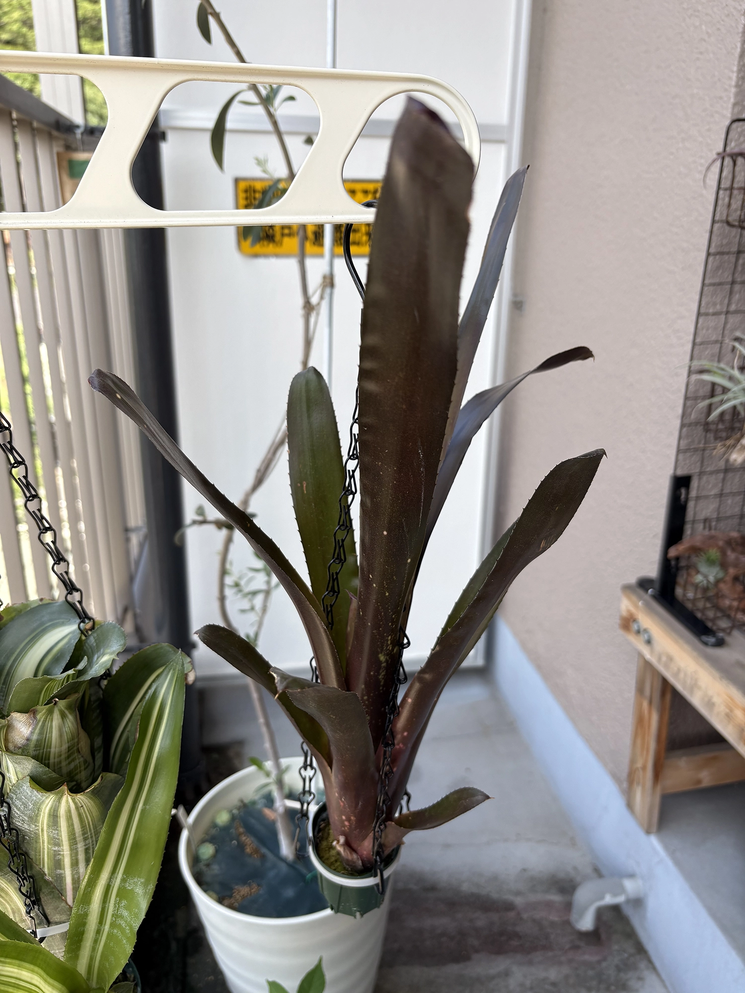 と言うのも、冬の間室内でぬくぬくとさせていたブロメリア達を、梅雨の間にベランダに出しまして。